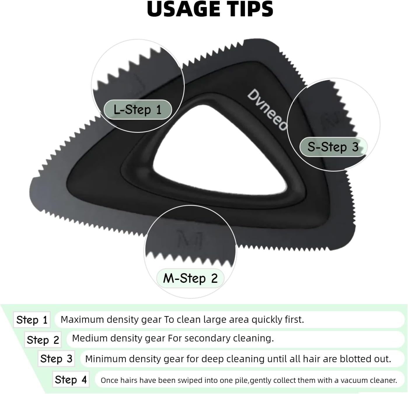 - Rapid Hair Removal: Its innovative triangular design effortlessly lifts stubborn, deeply embedded pet hair from car mats, furniture, and carpets. No strenuous scrubbing—just quick, satisfying results every time.