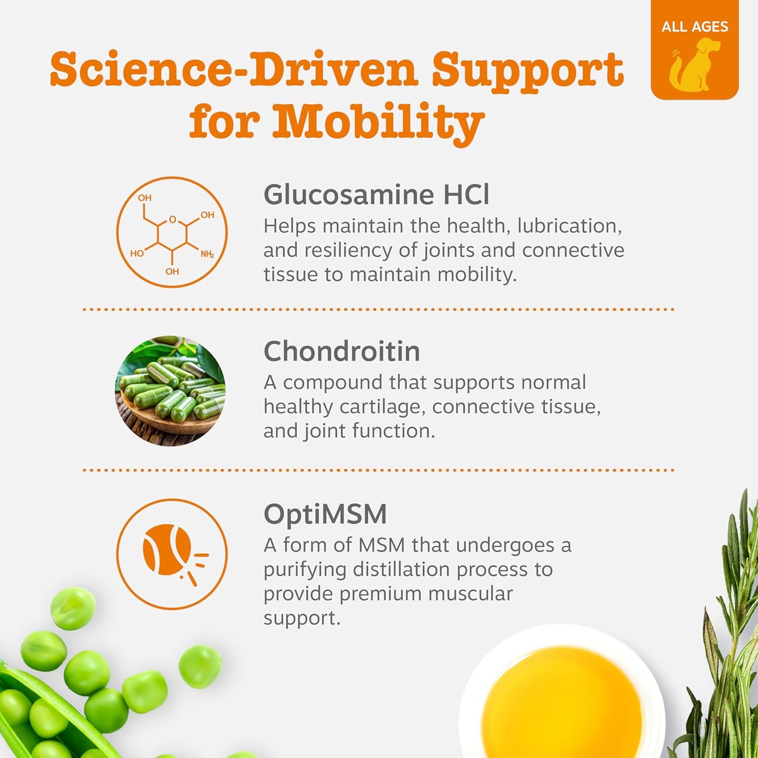GLUCOSAMINE HYDROCHLORIDE FLEXIBILITY: This dog glucosamine and chondroitin supplement helps maintain joint health, lubrication, and resilience for an active lifestyle.
